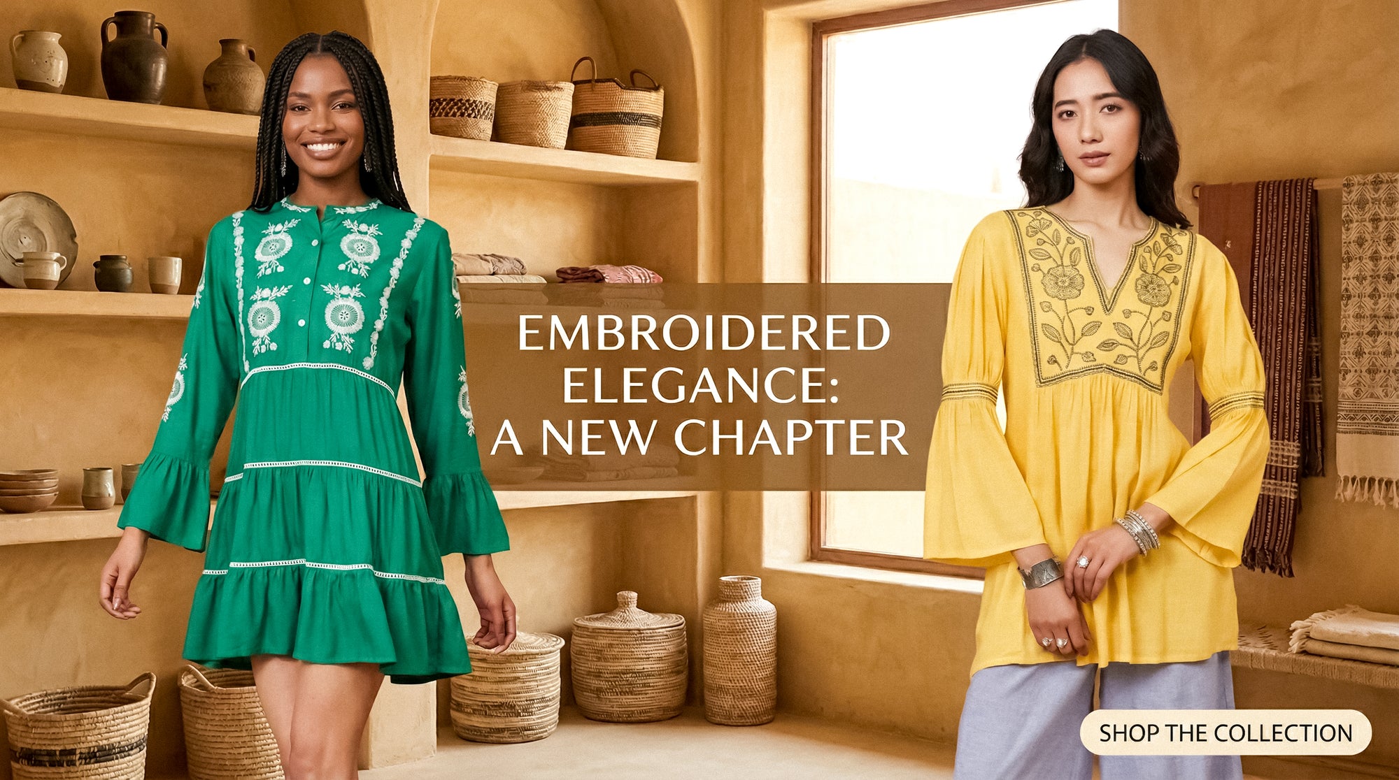 Daylist Ivory Embroidered Bell Sleeve Tunic Top